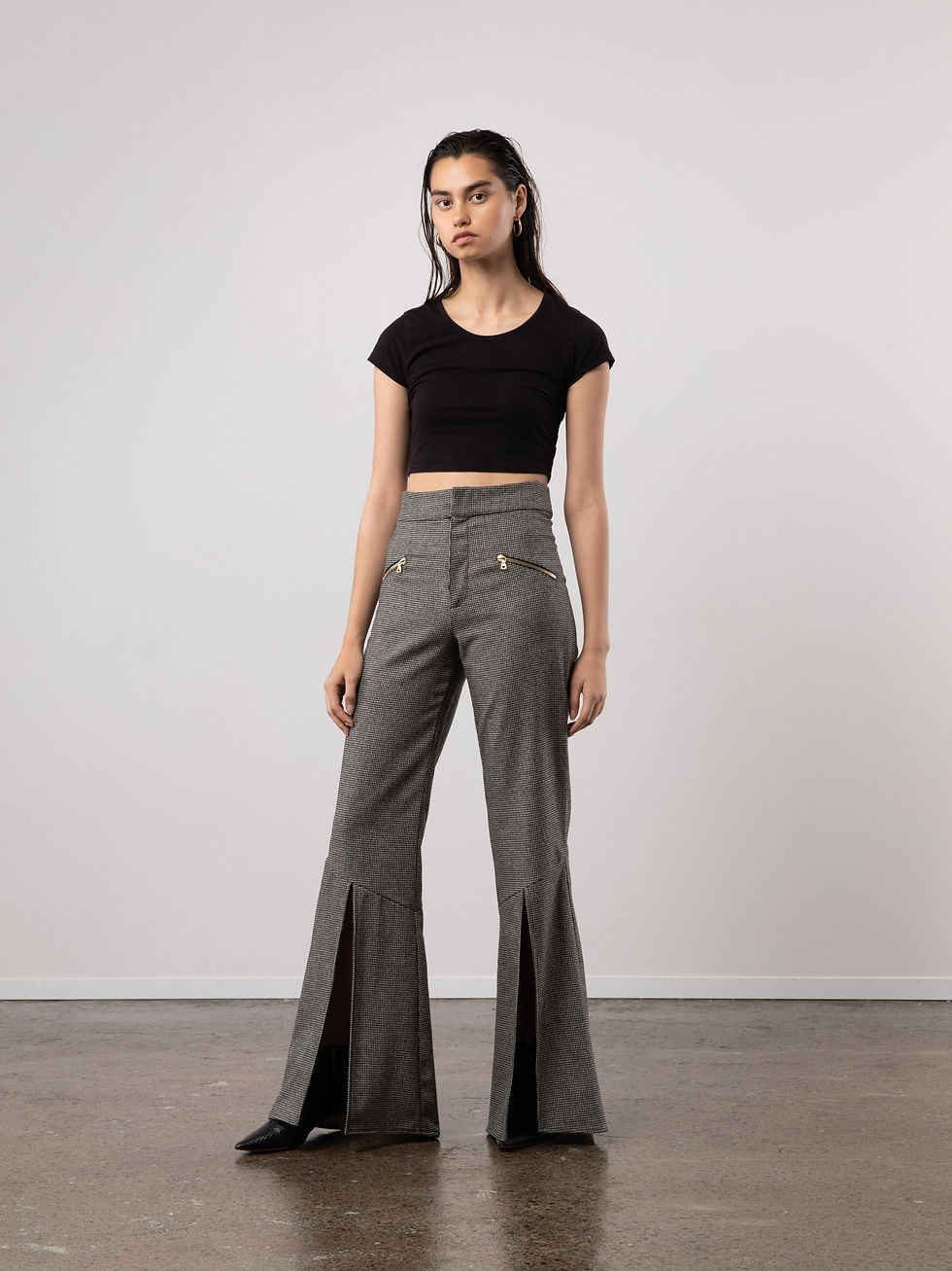 WOOL FLARED PANTS WITH SLIT